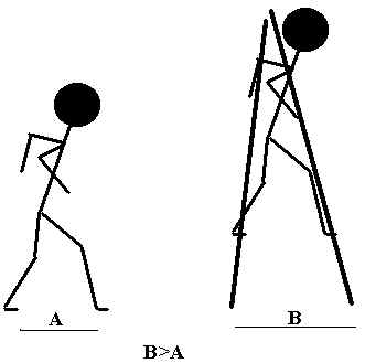 Elevated Foot Gear: This is a very different technology is based on the same principle of augmenting and accelerating optical flow. Vision geometry suggests that elevating the eyes above their normal height will accelerate optical flow and this can overcome freezing. (see diagram) The problem with this approach is that the subject will eventually functionally adapt to the elevated eye position and then the benefits of the approach are lost.